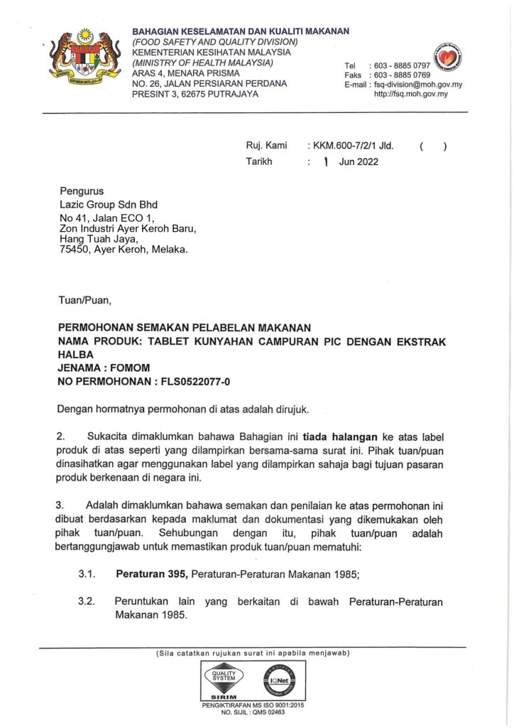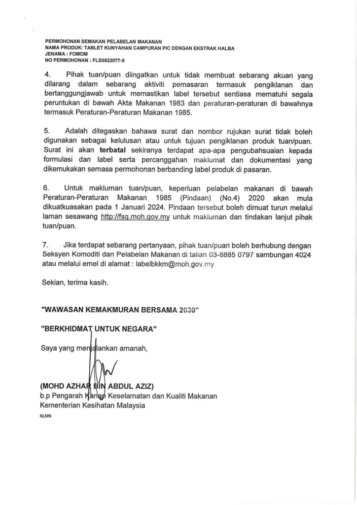 DISAHKAN OLEH KKM YANG FOMOM NI SELAMAT DAN TIADA KESAN SAMPINGAN